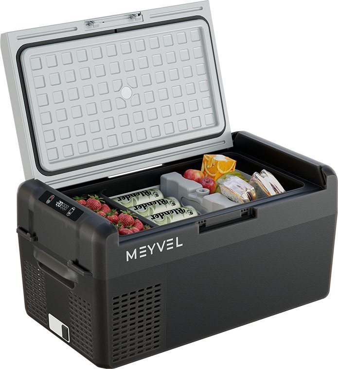 | Описание | Компрессорный мини-холодильник в машину Meyvel AF-L20 ICE Meyvel AF-L20 ICE на 20 л — это не просто переносной автохолодильник. Это компактное и технологичное устройство для тех, кто хочет быть уверенным в сохранности продуктов, медикаментов или напитков в дороге вне зависимости от погодных условий.Его можно использовать как морозильник или в качестве холодильника, потому что поддерживаемый температурный диапазон — от -20 до +20°C. Никаких ограничений или лишних кнопок — просто задаёте нужный режим и пользуетесь. Система охлаждения компрессорная, а это значит, что холодильник быстро достигает заданной температуры и стабильно её удерживает, независимо от внешней жары. Для автомобиля и не только Meyvel AF-L20 ICE подключается к прикуривателю и работает от сети 12 или 24 В. Это удобно для легковых машин, грузовиков, катеров, кемперов и другой техники. Но, если вам нужно использовать его дома, на даче или в гараже, — предусмотрено подключение к стандартной розетке 220 В (с помощью дополнительного адаптера, который приобретается отдельно). Аккумулятор холода — это ещё один козырь. Он не требует зарядки: холод накапливается, пока холодильник работает от сети, и удерживается даже после отключения. Такая функция особенно ценна в пути — если вы остановились на отдых, внутри камеры автохолодильника ещё долго будет сохраняться нужная температура. Безопасность для аккумулятора Если вы оставляете устройство включённым на ночь, это не закончится полной разрядкой аккумулятора машины. Встроенная система защиты следит за уровнем напряжения и, при необходимости, автоматически отключает питание. Причём доступно три уровня чувствительности — это позволяет настроить отключение в зависимости от типа машины. Такое решение избавляет от риска — особенно важно для тех, кто путешествует в одиночку или в отдалённых местах, где помощь может быть не доступна сразу. Интеллектуальная работа Автохолодильник сам регулирует мощность компрессора, ориентируясь на заданную температуру. Эта функция автоматического поддержания избавляет от необходимости вручную включать или выключать устройство. Также доступны два режима: MAX — для ускоренного охлаждения, например, если вы только что загрузили продукты, и ECO — для экономии энергии, когда холодильник уже достиг нужной температуры. Особое удобство — управление через мобильное приложение. Менять температуру, отслеживать параметры, переключать режимы можно прямо со смартфона. Это особенно полезно в дороге или в кемпинге, когда нет желания каждый раз подходить к панели управления. Минимум шума, максимум комфорта Несмотря на компрессорную систему, уровень шума Meyvel AF-L20 ICE менее 35 дБ, что тише обычного разговора. Вы можете спокойно отдыхать, спать или работать, не отвлекаясь на гудение или вибрации. При этом устройство стабильно справляется с задачами охлаждения, не теряя производительности даже при интенсивном использовании. Продуманный дизайн и удобство В модели AF-L20 ICE всё заточено под удобство. Эргономичные ручки для лёгкой транспортировки, крышка с надёжной защёлкой, чтобы исключить случайное открытие в пути. А реверсивная двери адаптирует холодильник под конкретное расположение в багажнике, салоне или кемпере. Корпус компактный, но прочный, с хорошей теплоизоляцией. Даже без питания внутри долго сохраняется холо