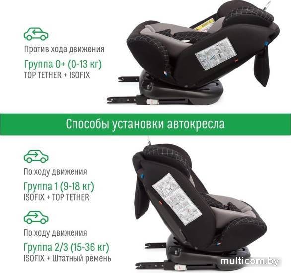 | Крепление | посредством ремней автомобиля, ISOFIX, якорное |