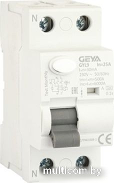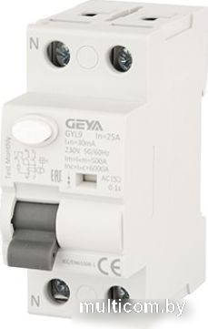 | Информация | GEYA - УЗО GYL9-2P-25A-30mA, 2P, 25A, 6 kA, 30mA, тип A, 2M - Артикул: GYL92P25A30 |