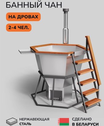 | Информация | Банный чан на дровах SCANDINAF – это премиальный уличный банный чан, созданный для максимально комфортного парения на вашем участке круглый год. Чан выполнен из нержавеющей стали толщиной 2 и 3 мм, с большим запасом прочности, что позволяет использовать его в различных экстремальных температурных и погодных условиях. Сварные швы выполнены аппаратом лазерной сварки и обработаны специальным составом пассивирования, что защищает чан от коррозии и продлевает минимальный срок службы от 10 лет. Поверхность чана обработана методом сатинирования, что придает металлу эстетичный вид и защищает от царапин. Дровяная печь с водяной рубашкой из нержавеющей стали толщиной 3 мм, выполнена по технологии водяной рубашки и подового горения, что позволяет быстро и безопасно нагреть воду в банном чане до необходимой температуры менее чем за 2 часа. У основания печи расположен сливной кран, чтобы можно было быстро слить воду из чана. С обратной стороны к печи крепится сэндвич-дымоход, который отделяет горячую трубу от прикосновений, тем самым убирает риск обжечься о металл. Составной дымоход изготовлен из нержавеющей стали толщиной 1 мм, что предотвращает постепенное прогорание дымохода, а дефлектор с ветрозащитой и искрогасителем защищает дымоход от осадков, а территорию вокруг чана от продуктов горения, искр и пепла. Окантовочная доска по периметру, а также сидушки и лестница выполнены из термодревесины. Данное дерево хорошо переносит влажность и постоянное нахождение в воде, не рассыхается и не гниет, а также обладает приятным ароматом. Опора чана изготовлена из профильной трубы толщиной 2 мм, квадратного сечения. Конструкция опоры имеет большой запас прочности и рассчитана на вес, в несколько раз превышающий вес банного чана с водой и людьми внутри. Все чертежи и элементы наших банных чанов разработаны в нашем конструкторском отделе на специальном программном обеспечении совместно с командой дизайнеров, что позволяет сочетать оптимальную форму, технологии, а также эстетичный внешний вид банного чана на вашем загородном участке. Наше производство банных чанов расположено в Беларуси и отвечает всем современным стандартам качества и безопасности. Лазерное, листогибочное и сварочное оборудование Trumpf (Германия) – это самые современные и технологичные станки в нашем металлообрабатывающем цеху. Высокая точность, надежность и автоматизация лежит в изготовлении наших банных чанов. На участке упаковки чан обматывается в несколько слоев пузырчатой пленки и картона, с защитой всех комплектующих и углов, а также помещается в деревянную обрешетку, чтобы гарантировать надежную транспортировку к вам на участок. В каждом изделии от нас вы найдете приятные подарки в виде набора для парения, небольшого деревянного столика, чтобы находится в чане вместе с вашими любимыми напитками, полотенцедержателя и термокрышки. Банные чаны и купели на дровах SCANDINAF серии Comfort, Furako, Diamond и Elite – диаметром 170, 190 и 200 см рассчитаны на использование до 10 чел. Использование банных чанов зимой позволит вам окунуться в незабываемую атмосферу целого СПА комплекса на вашем участке, а летом подарит приятную прохладу телу в жару и возможность детям резвится в воде целый день. Различные комплектации и формы нашей серии позволят вам выбрать лучший банный чан SCANDINAF