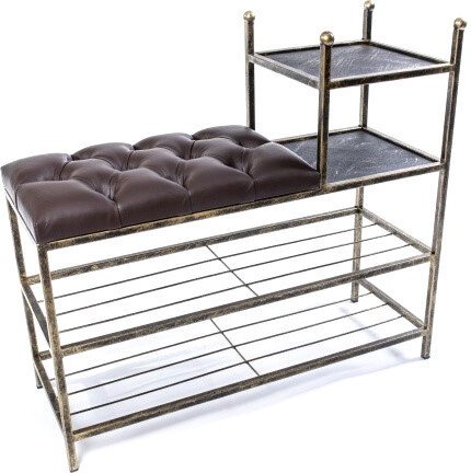 металл, обивка: ткань, полка для обуви, 74x30x80 см, цвет: золотистый/черный
