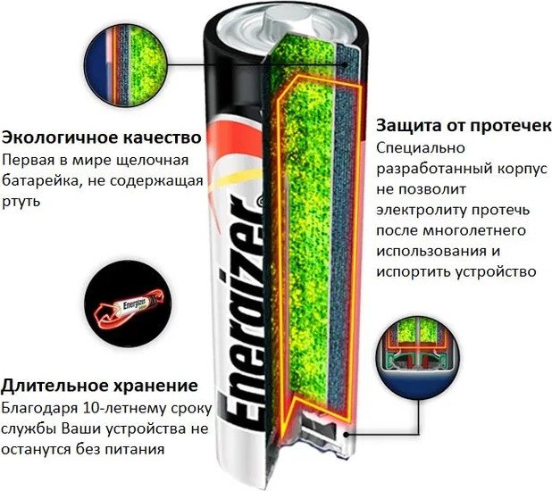 | Информация | ? Батарейки Energizer Max AAA обеспечивают долговечное и надежное питание бытовых устройств. ? Сохраняют энергию до 10 лет, всегда готовы к работе. ? Защищают ваши устройства от разрушительных утечек. ? Надежное питание для ваших повседневных устройств. |