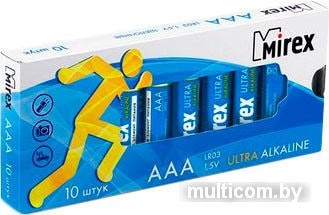 | Информация | «Мизинчиковая» (AAA) батарейка MIREX ULTRA ALKALINE LR03 - универсальный источник питания, который обеспечивает долговременную бесперебойную работу портативных современных устройств и бытовых приборов, чья мощность оказывает сравнительно высокое влияние на расход энергии. К таким устройствам относятся электронные детские игрушки, фотоаппараты, фонари, зубные щетки, беспроводная компьютерная периферия, офисные телефоны и даже некоторая бытовая техника.Батарейка MIREX LR03 особо устойчива к протеканию электролита, благодаря корпусу, который изготовлен по специальной технологии «AntileaX». Наиболее популярный и распространённый источник энергии, надежный в эксплуатации. Имеет длительный срок службы. Обладает электрохимической емкостью в несколько раз большей, по сравнению с обычной солевой батарейкой.Элемент MIREX LR03 рекомендуется для питания различных устройств, которые необходимы для комфортного отдыха и продуктивной работы. Вы можете в полной мере наслаждаться жизнью и новыми возможностями, благодаря продолжительной работе щелочной батареи Mireх |