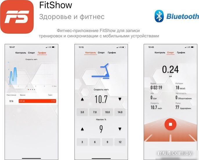 | Особенности | Имеется возможность синхронизации беговой дорожки с мобильным устройством при помощи приложений FitShow/Kinomap/Zwfit, с возможностью управления беговой дорожкой и сохранения тренировок. |