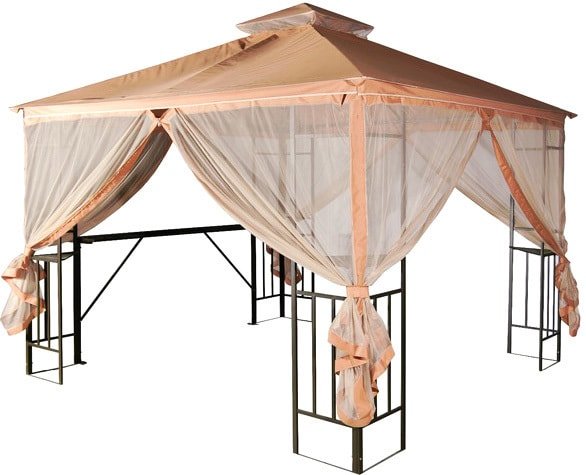 | Информация | - Каркас шатра изготовлен из стали, обработанной специальным порошковым покрытием. Сечение несущей стальной трубы 30х15мм. Толщина стали 1,2 мм (более чем в 2 раза превосходит китайские аналоги).- Тент сшит из ткани полиэтер, пропитанной специальным водоотталкивающим средством.- Стенки шатра выполены из полиэстера с антимоскитными сетками на молниях.- В верхней части крыши есть вентиляционный клапан.- В комплекте 4 съемных угловых полки для предметов декора. |