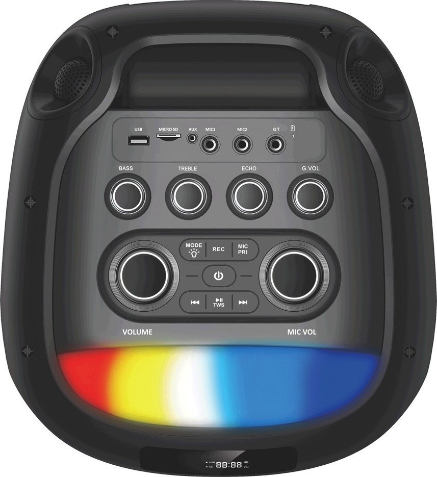| Информация | - Eltronic 30-30 DANCE BOX 1200 — это мощная концертная акустика, созданная для вечеринок и мероприятий, где требуется насыщенное и громкое звучание. Колонка оснащена двумя 10-дюймовыми динамиками, обеспечивающими яркий и объёмный звук с запасом по мощности для просторных помещений. Благодаря поддержке функций Bluetooth, FM-радио и воспроизведению с USB-накопителей или microSD-карт, вы сможете наслаждаться любимой музыкой в любом формате. - Модель оборудована информативным дисплеем и многоцветной LED-подсветкой, которая создаёт эффектную атмосферу на вечеринке. Для удобства транспортировки предусмотрена встроенная ручка, а также прочный пластиковый корпус, который обеспечивает долговечность устройства. Колонка способна работать как от сети, так и от встроенного аккумулятора, обеспечивая до 5 часов автономной работы. - В комплекте поставляется беспроводной микрофон, что делает Eltronic 30-30 DANCE BOX 1200 отличным выбором для караоке и различных мероприятий. Модель поддерживает синхронизацию по технологии TWS, что позволяет объединять несколько колонок для создания стереопары и ещё более мощного звукового сопровождения. - Управлять акустикой можно при помощи пульта дистанционного управления или механических кнопок на корпусе. Дополнительные функции устройства включают регулировку громкости и эхо микрофона, встроенный эквалайзер и возможность подключения гитары. Всё это делает колонку универсальным решением для домашнего и профессионального использования на праздниках и концертах. |