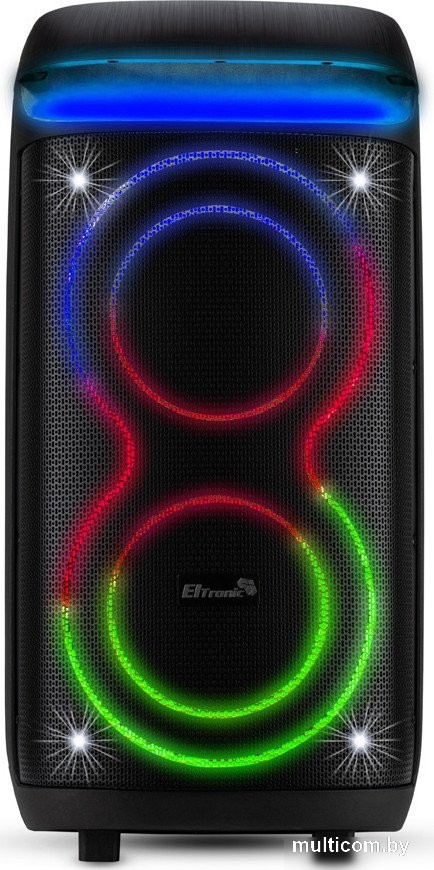 | Информация | - Eltronic CRAZY BOX 1000 — мощная акустическая система для вечеринок, оснащённая двумя 8-дюймовыми динамиками и поддержкой беспроводного соединения TWS для создания стереопары. Корпус выполнен из прочного пластика, что в сочетании с удобной встроенной ручкой облегчает транспортировку устройства. - Колонка поддерживает воспроизведение музыки через Bluetooth, FM-радио, USB-накопители, SD-карты и имеет дополнительный AUX-вход. Это позволяет подключать различные устройства и использовать акустику как универсальный центр развлечений. - Среди функциональных особенностей выделяются LED-подсветка для создания атмосферы праздника, информативный дисплей, встроенный эквалайзер и режим усиления басов. Система оснащена микрофонным и гитарным входом, что делает её отличным выбором для караоке-вечеринок. - CRAZY BOX 1000 работает от сети и встроенного аккумулятора ёмкостью 5400 мАч, обеспечивая до 5 часов автономной работы. Управление осуществляется с помощью кнопок на корпусе и пульта дистанционного управления, что позволяет удобно настраивать звук и использовать все функции устройства. |