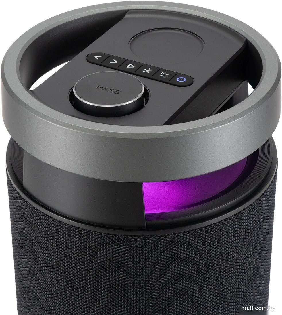 | Информация | -Ключевые характеристики Портативная Bluetooth колонка с мощностью до 200 Вт, рассчитанная на пользователей, которым важна высокая громкость и автономность. Устройство оснащено пятью динамиками, поддерживает работу от аккумулятора до 10 часов, защищено по стандарту IPX5 и оборудовано RGB подсветкой. -Преимущества и отличия Модель выделяется крупными динамиками, поддержкой режима TWS для создания стереопары, наличием микрофонного входа 6.3 мм для караоке, а также возможностью воспроизведения музыки с USB-накопителя. -Практичность Колонка легко подключается по Bluetooth 5.0, дополнительно оснащена AUX-входом 3.5 мм, что расширяет совместимость с разными устройствами. Зарядка осуществляется через современный разъем USB Type-C, а влагозащита позволяет использовать колонку на улице и на вечеринках. -Уникальность Яркая RGB-подсветка, объемный 360-градусный звук за счет пяти динамиков, поддержка эквалайзера и функция караоке делают модель отличным выбором для активного отдыха и домашних мероприятий. |