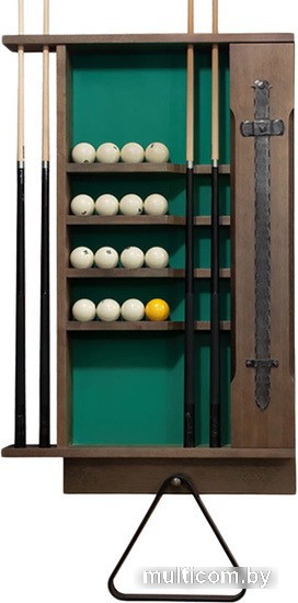 | Информация | Киевница «Камелот» органично дополняет бильярдный стол с одноименным названием и является превосходным решением для хранения всех необходимых для игры аксессуаров и атрибутики. Конструкция киевницы универсальна и позволяет установить в строго вертикальном положении четыре бильярдных кия, предназначенных как для русского бильярда, так и для американского пула. Четыре полочки будут удобны не только для хранения полного комплекта бильярдных шаров, но и для ведения счета во время игры. Внизу киевницы имеется специальный подвес для треугольника, а в правой части – целое отделение для бильярдных мелков и прочих аксессуаров с дверцей, которая, как и сам бильярд, украшена декоративной металлической накладкой в форме средневекового меча. Киевница «Камелот» устанавливается на стене и позволяет оформить игровую зону в едином с бильярдным столом стиле. Кии, шары, треугольник в комплектацию киевницы не входят. |
