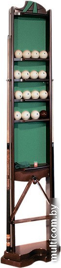 | Информация | Напольная киевница «Консул-3» от компании «Руптур» – это компактный предмет мебели, идеальный для небольших бильярдных, позволяющий разместить стандартный комплект бильярдных аксессуаров. Киевница устанавливается на полу, имеет устойчивое основание. Шары располагаются на четырех полках, а два кия – по бокам киевницы, вертикально. Треугольник размещается на вешалке снизу, а мелочи – на нижней небольшой полочке. Мебель изготовлена из массива высокосортного дерева. Два декоративных тканевых элемента имеются на верхней части, а сама стенка обтянута сукном. Киевница «Консул-3» гармонично впишется в любой интерьер. Особенно рекомендована для небольших домашних бильярдных с ограниченной площадью. Кии, шары, треугольник в комплектацию киевницы не входят. |