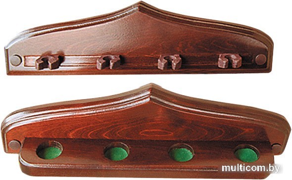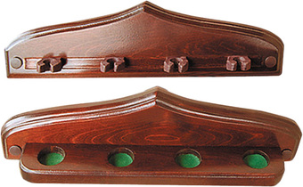 | Информация | Навесная киевница «Модерн» от компании «Руптур» – компактный предмет мебели оригинального дизайна, предназначенный для хранения киев. Киевница представлена двумя частями, которые крепятся друг над другом на стене. Четыре кия располагаются вертикально, с упором в специальные ниши на нижнем элементе и фиксацией в верхней части. Элементы киевницы выполнены из массива дерева в стиле модерн, с заостренными верхними частями – изделие оптимально дополнит любой современный интерьер бильярдного помещения. Кии, шары, треугольник в комплектацию киевницы не входят. |