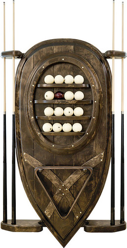 | Информация | Кивеница «Воевода» — функциональный предмет бильярдной мебели, выдержанный в самобытном старорусском стиле. Оригинальное изделие для стилистического оформления бильярдного помещения от компании «Руптур». Дизайн киевницы необычен, в тоже время прост и лаконичен, напоминает массивный щит древнерусского воина. В центральной части, в овальном обрамлении находятся четыре полки для шаров. Кии размещаются по бокам изделия в специальных нишах, по два с каждой стороны. Треугольник крепится на подвесе снизу киевницы. Бильярдные мелочи можно положить на две небольшие нижние полочки. Киевница «Воевода» идеальна для дизайнерского оформления бильярдной в духе Старой Руси, и может использоваться как украшение любого помещения в доме, где установлен бильярдный стол «Русич». Кии, шары, треугольник в комплектацию киевницы не входят. |