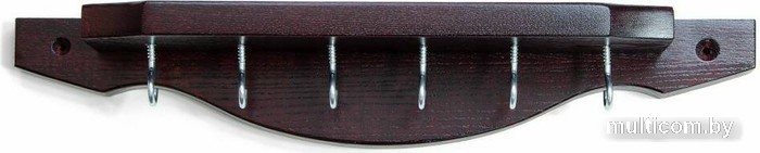 | Информация | ? Киевница Weekend 70.003.06.0 - изготовлена из массива ясеня с темным оттенком "Махагон" и сильным бордово-малиновым отливом. ? Этот аксессуар крепится на стену и рассчитан на 6 киев. ? В комплект входят 6 металлических крюков, но кии необходимо укомплектовать дополнительно подвесами. ? Изделие состоит из двух функциональных частей, одна из которых декоративная с аркой, а вторая с отверстиями для крюков. ? Деталь с крюками прикручивается к нижней части элемента с аркой, а затем элемент с аркой прикручивается к стене так, чтобы крюки смотрели вниз. ?? Цвет изделия: дерево с красным оттенком. |