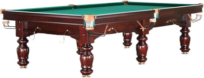 | Информация | Конструкция стола включает в себя ряд новейших разработок, используемых в производстве бильярдного оборудования, что поднимает эту модель на новый уровень качества, долговечности и профессионализма:1. Рама и ножки стола изготовлены из переклеенных брусков твердых пород дерева, что обеспечивает прекрасную жесткость и отличную устойчивость к перепадам температур.2. Каждая из ножек крепится к боковой части рамы (царге) двумя болтами, снабженными шайбами специальной формы, которые не позволяют каркасу стола расшатываться в процессе эксплуатации.3. Ширина борта, изготовленного из массива твердых пород дерева, увеличена с распространенных 90 мм до 100 мм, а длина крепежного болта до 120 мм., что позволяет игроку полностью контролировать траекторию движения шаров.4. Стол оснащен лузами с выкатом со скобами специальной конструкции, обеспечивающие их прочность и износостойкость.5. В ножках стола установлены металлические домкраты с болтом увеличенного сечения и длинной втулкой, позволяющие регулировать высоту бортов в более широком диапазоне. |