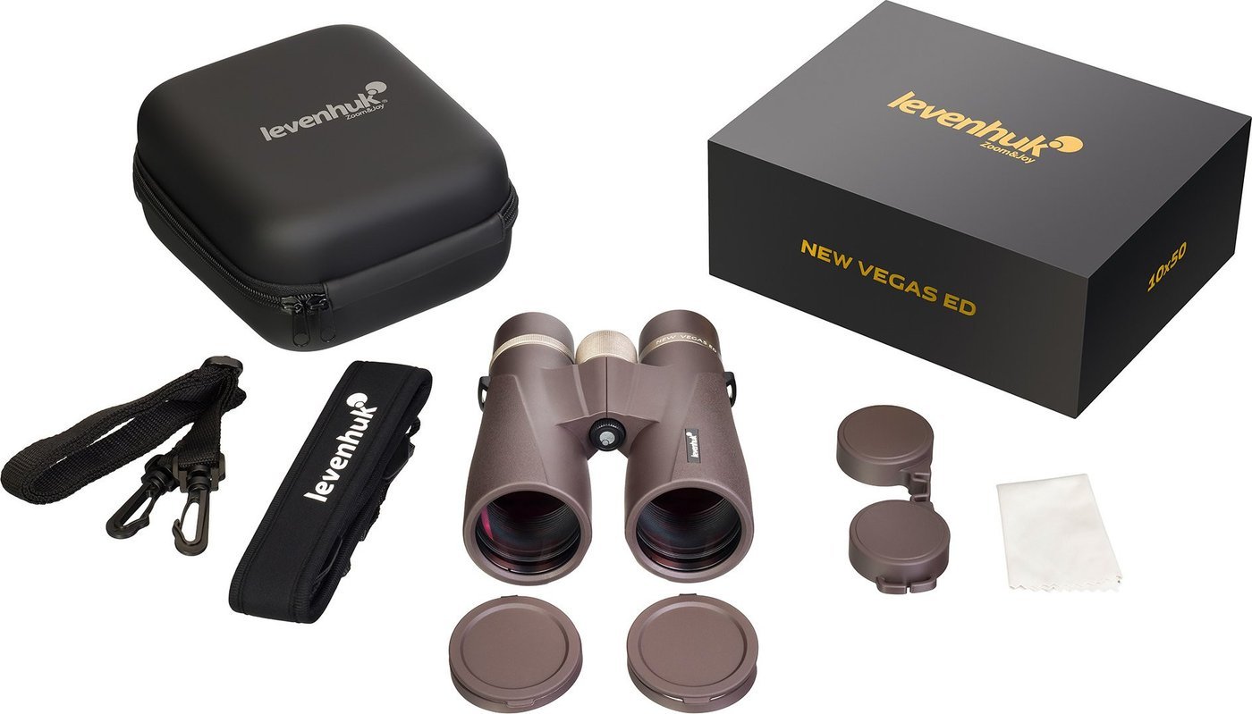 Информация | - Levenhuk New Vegas ED 10x50 – это идеальный полевой бинокль для охотников, рыбаков, путешественников и любителей дикой природы. С 10-кратным увеличением и полем зрения 6,8° он отлично подходит как для общих наблюдений, так и для слежения за движущимися объектами, такими как животные и птицы. Никакие погодные условия не помешают вашим наблюдениям: бинокль защищен герметичным корпусом по стандарту IP67, а многослойное просветляющее покрытие линз обеспечивает яркое и четкое изображение даже в сумерках. - Особая оптическая конструкция Levenhuk New Vegas ED 10x50 основана на компактных roof-призмах из стекла BaK-4, что обеспечивает отличное светосбор. Низкодисперсионное ED-стекло исключает хроматические искажения, а уникальная конструкция окуляров из пяти элементов в трех группах придает изображению реалистичность. Бинокль заполнен азотом, что предотвращает образование конденсата и защищает от коррозии. - Удобный механизм центральной фокусировки с маховиком позволяет быстро настраивать резкость в обеих трубах. Вы сможете легко адаптировать бинокль под свои физиологические особенности, изменяя межзрачковое расстояние, регулируя диоптрии и настраивая поворотно-выдвижные наглазники для максимального комфорта. - Основные особенности: - Поворотно-выдвижные наглазники с регулируемой высотой - Кольцо диоптрийной коррекции (±4 D) - Возможность использования с штативом (необходим адаптер) - Многослойно просветленные линзы и призмы для отличного изображения в сумерках - Всепогодный бинокль, защищенный от внешних факторов - В комплект входят: - Бинокль - Крышки окуляров и объективов - Ремешок - Чехол - Салфетка для очистки оптики - Инструкция по эксплуатации и гарантийный талон |