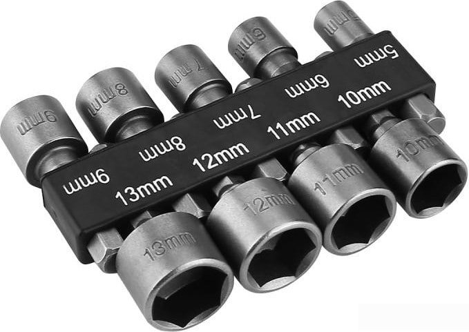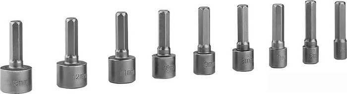 Комплектация | Набор головок включает в себя 9 шт: 5, 6, 7, 8, 9, 10, 11, 12, 13 мм |