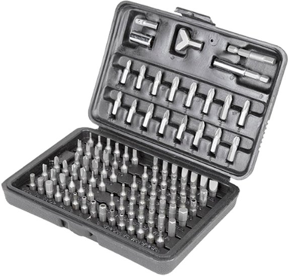 | Информация | Набор бит Remocolor 33-2-701 состоит из 100 наиболее востребованных предметов, а так же включает в себя сменные отвёрточные биты, адаптеры и держатель для бит. Инструменты используются для монтажа/демонтажа крепёжных элементов различного профиля. Насадки изготовлены из хромованадиевой стали, отличаются высокой прочностью, а также устойчивостью к коррозии и износу. Набор поставляется в пластиковом боксе, что обеспечивает удобное хранение. |