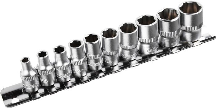 | Комплектация | В набор входят торцевые головки с универсальным профилем SPLINE на планке под квадрат 1/4" следующих размеров: 4, 5, 6, 7, 8, 9, 10, 11, 12 и 13 мм. |