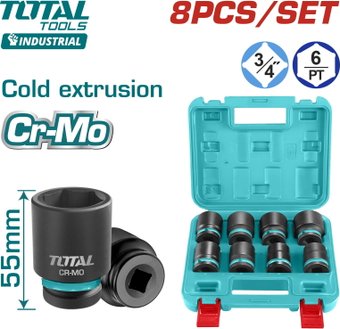 | Комплектация | - Торцевая головка 3/4'' (26, 27, 29, 30, 32, 35, 36, 38 мм) - 8 шт. - Пластиковый кейс - 1 шт. |