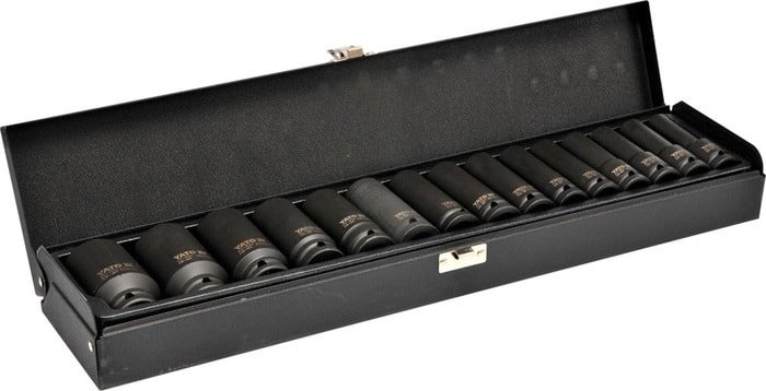 | Комплектация | Набор торцевых ударных глубоких головок 1/2" - 10, 12, 13, 14, 15, 16, 17, 18, 19, 21, 22, 24, 27, 30, 32 мм |