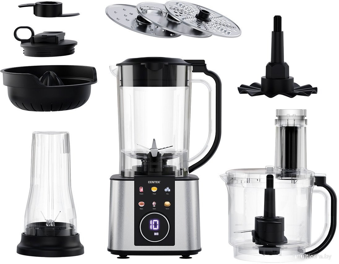 | Информация | - CENTEK CT-1370 - это многофункциональный кухонный комбайн-блендер, который станет универсальным помощником на вашей кухне. Он сочетает в себе функции сразу нескольких приборов, позволяя измельчать, взбивать, нарезать, шинковать и даже замешивать тесто. Благодаря высокой мощности, устройство легко справляется даже с самыми сложными продуктами, включая лед и кофейные зерна. - Основой комбайна служит мощный двигатель 2000 Вт, который развивает до 21 000 оборотов в минуту. Это позволяет быстро и эффективно выполнять широкий круг кухонных задач - от приготовления смузи и кремов до замеса теста различной консистенции. Автоматическое определение чаши и шесть автоматических программ делают работу с прибором максимально удобной и избавляют от необходимости подбирать режим вручную. - Сенсорный LED-дисплей и плавная регулировка скорости обеспечивают интуитивно понятное управление и позволяют легко контролировать процесс приготовления. Корпус устройства выполнен из нержавеющей стали и пластика, что гарантирует долговечность и стильный внешний вид. Прорезиненные ножки обеспечивают устойчивость на рабочей поверхности, а сенсорное управление делает эксплуатацию особенно приятной. - В комплекте с комбайном идут различные аксессуары:диски для нарезки слайсами и шинковки, насадки для замешивания теста, шейкер, эмульгатор и другие полезные элементы. Это позволяет использовать CT-1370 максимально разнообразно и расширяет его функциональность, превращая обычное приготовление пищи в легкий и приятный процесс. |