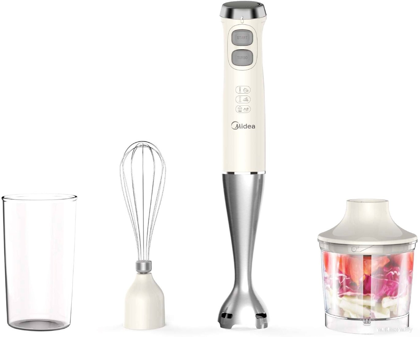 | Информация | Блендер погружной 3 в 1 Midea MC-BL705 это многофункциональный прибор. Благодаря сменным насадкам MC-BL705 выполняет работу нескольких кухонных устройств: блендера, миксера и измельчителя. Максимальная мощность в режиме турбо - 1000 Вт, номинальная мощность прибора - 600 Вт. Имеет плавную регулировку скорости от L - низкая скорость для взбивания яиц, измельчения фруктов и овощей, до H - высокая скорость для взбивания сливок, колки льда, размалывания твёрдых веществ. При измельчении густых и твердых продуктов необходимо включать блендер несколько раз по 10 сек с перерывами по 5-10 сек для избежания перегрузок двигателя. Удобная длина кабеля 120 см для оптимального использования. Аксессуары можно мыть в посудомоечной машине. |