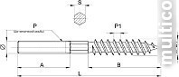 Особенности конструкции: крепежный элемент имеет шуруп с одной стороны и шпильку с метрической резьбой с другой, разделенные шестигранной поверхностью (за исключением размеров 8х60 и 10х60). Для удобства завинчивания на конце шпильки, имеющем метрическую резьбу, может располагаться шлиц Torx T25.