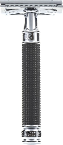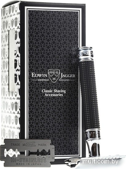 | Информация | Классическая Т-образная бритва Edwin Jagger с закрытым гребнем. Сделана из хромированной латуни. Ручка выполнена в черном цвете. В комплект входит одно бесплатное лезвие Feather. Ручка выполнена в элегантном черном цвете, а также имеет рельефную поверхность, выполненную в стиле 3D Diamond — уникальной технологии «Edwin Jagger». Такая поверхность обеспечивает отличное сцепление бритвы с мокрой рукой. Станок среднего размера. Общая длина бритвы 9,3 см. Длина ручки 8,5 см. |