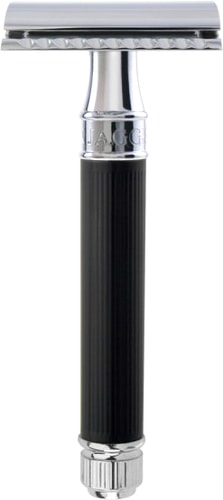 | Информация | Для тех, кто ищет идеального сцепления бритвы, даже с влажной рукой. Резиновое покрытие на рукоятке бритвы изготовлено в элегантном черном цвете. Классическая бритва на лезвия с закрытым гребнем высокого качества. Хромированные элементы придают особый шарм. В комплект входит одно бесплатное лезвие Feather. |