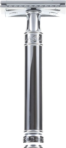 | Информация | Хромированная традиционная бритва. Состоит из трех частей и имеет безопасный закрытый гребень. Предназначена для ежедневного бритья. Очень хорошо сбалансирована. Длина головки бритвы - 25 мм; ширина головки - 41 мм. В комплект входит одно бесплатное лезвие Feather. |