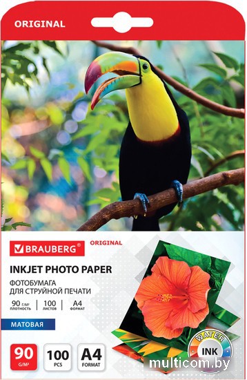 | Информация | Матовая односторонняя фотобумага BRAUBERG подходит для всех типов струйных принтеров. Незаменима для печати рекламных материалов, текста, портфолио и фотопортретов. Напечатанное изображение не бликует, а тона имеют бархатистую глубину. Имеет формат А4 и плотность 90 г/м2. Отлично подходит для печати черно-белых изображений. Гладкая поверхность обеспечивает превосходное качество, а особый состав — идеальную цветопередачу. Печать возможна водорастворимыми и пигментными чернилами. Поставляется по 100 листов в картонной упаковке с европодвесом. |