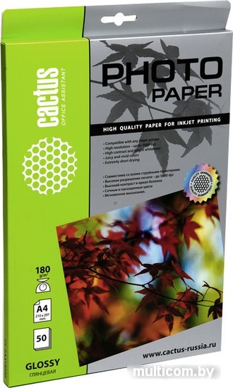 | Информация | Глянцевая фотобумага Cactus представляет собой оптимальное сочетание цены и качества. Она отлично подходит для печати памятных фотографий в фото-рамку или фотоальбом. Обладая приятным глянцевым блеском, она украсит ваши фотографии и презентации. А высококлассное покрытие позволит добиться максимально точной цветопередачи, что будет полезно при печати макетов и web-графики. |