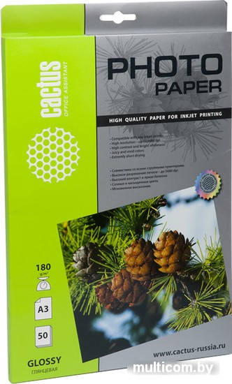 | Информация | Глянцевая фотобумага Cactus представляет собой оптимальное сочетание цены и качества. Она отлично подходит для печати памятных фотографий в фото-рамку или фотоальбом. Обладая приятным глянцевым блеском, она украсит ваши фотографии и презентации. А высококлассное покрытие позволит добиться максимально точной цветопередачи, что будет полезно при печати макетов и web-графики. |