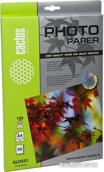 | Информация | Глянцевая фотобумага Cactus представляет собой оптимальное сочетание цены и качества. Она отлично подходит для печати памятных фотографий в фото-рамку или фотоальбом. Обладая приятным глянцевым блеском, она украсит ваши фотографии и презентации. А высококлассное покрытие позволит добиться максимально точной цветопередачи, что будет полезно при печати макетов и web-графики. |