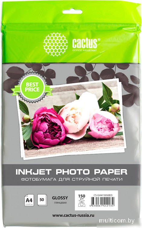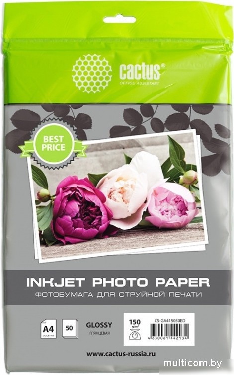 | Информация | ??Текст описания составлен при помощи искусственного интеллекта. - Идеально подходит для струйной печати фотографий и изображений. - Глянцевая поверхность обеспечивает яркие и насыщенные цвета печати. - Упаковка содержит 50 листов формата A4, что позволяет распечатать большое количество фотографий. - Поверхностная плотность 150 г/кв.м обеспечивает качественную и прочную печать. - Фотобумага CACTUS обеспечивает отличное качество изображений и долговечность печати. |