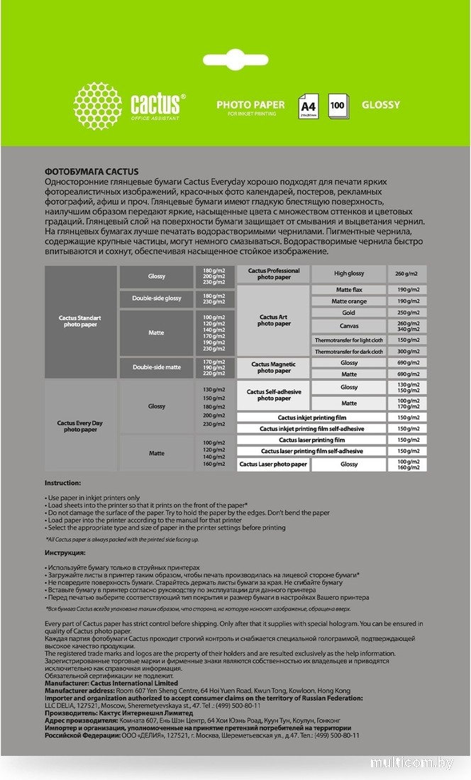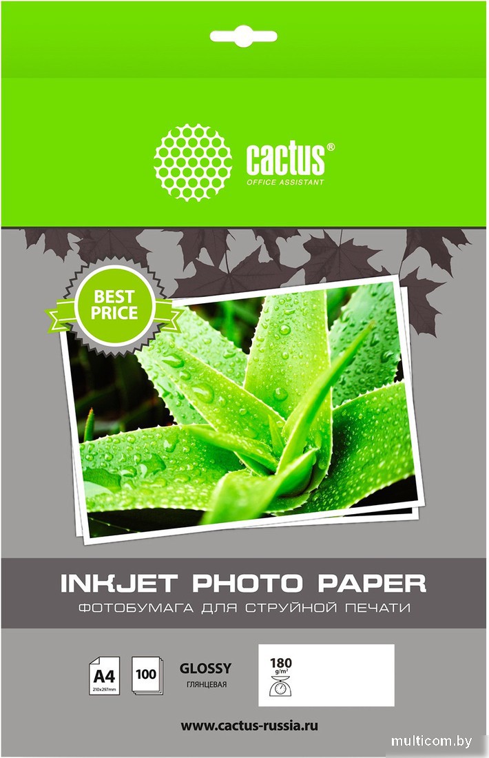 | Информация | ??Текст описания составлен при помощи искусственного интеллекта. - Высококачественная глянцевая фотобумага CACTUS идеально подходит для струйной печати. - Благодаря поверхностной плотности 180 г/кв.м., каждый лист обеспечивает отличное качество печати. - Упаковка содержит 100 листов формата A4, что позволяет использовать её для большого количества проектов. - Фотобумага CACTUS обеспечивает яркие и четкие изображения с глянцевой поверхностью, которая придает фотографиям профессиональный вид. - Надежная и удобная форма поставки в виде листов обеспечивает легкость использования и хранения. |