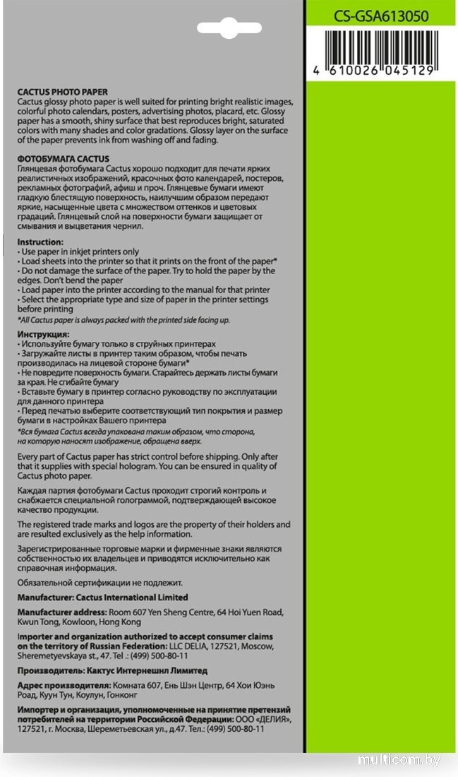 | Информация | ??Текст описания составлен при помощи искусственного интеллекта. - Самоклеящаяся бумага CACTUS Глянцевая A6 130 г/м2 50 листов CS-GSA613050 идеально подходит для струйной печати с максимальным разрешением 5680 dpi. - Ее поверхностная плотность 130 г/кв.м. обеспечивает высокое качество печати, а глянцевая поверхность придает изображениям яркость и насыщенность. - Формат A6 (10x15) и удобная форма поставки в виде листов делают использование этой бумаги максимально удобным и эффективным. - В упаковке 50 листов, что позволяет использовать ее для большого количества печатных работ. - Надежная самоклеящаяся основа обеспечивает прочное крепление бумаги на различных поверхностях. |