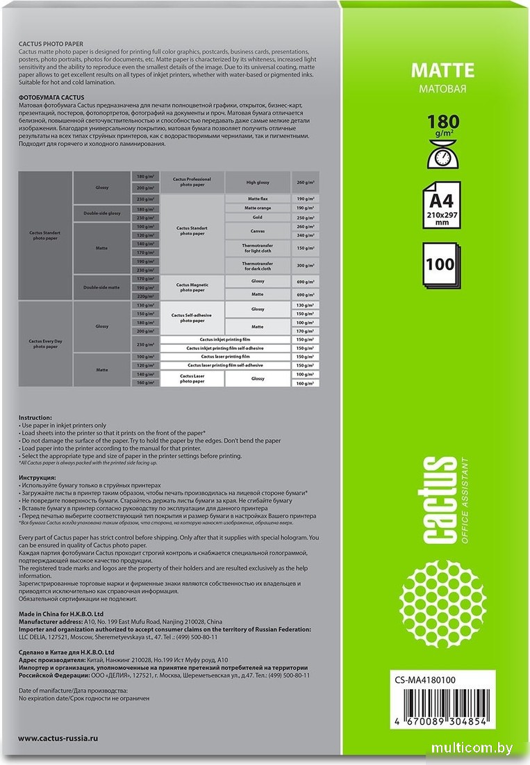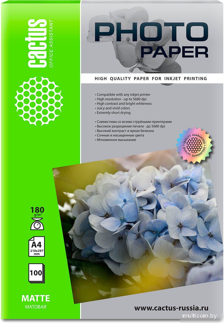| Информация | ??Текст описания составлен при помощи искусственного интеллекта. - Фотобумага CACTUS Матовая A4 180 г/м2 100 листов CS-MA4180100 идеально подходит для струйной печати. - С ее помощью вы сможете получить высококачественные изображения с максимальным разрешением печати до 5680 dpi. - Благодаря поверхностной плотности 180 г/кв.м. и матовой поверхности, фотобумага обеспечивает яркие и четкие отпечатки. - Упаковка содержит 100 листов, что позволяет вам распечатать большое количество фотографий или документов. - Фотобумага CACTUS подходит для использования с пигментными и водорастворимыми чернилами, обеспечивая стойкость изображений и их долговечность. |