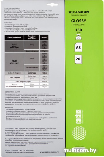 | Тип | самоклеящаяся бумага |