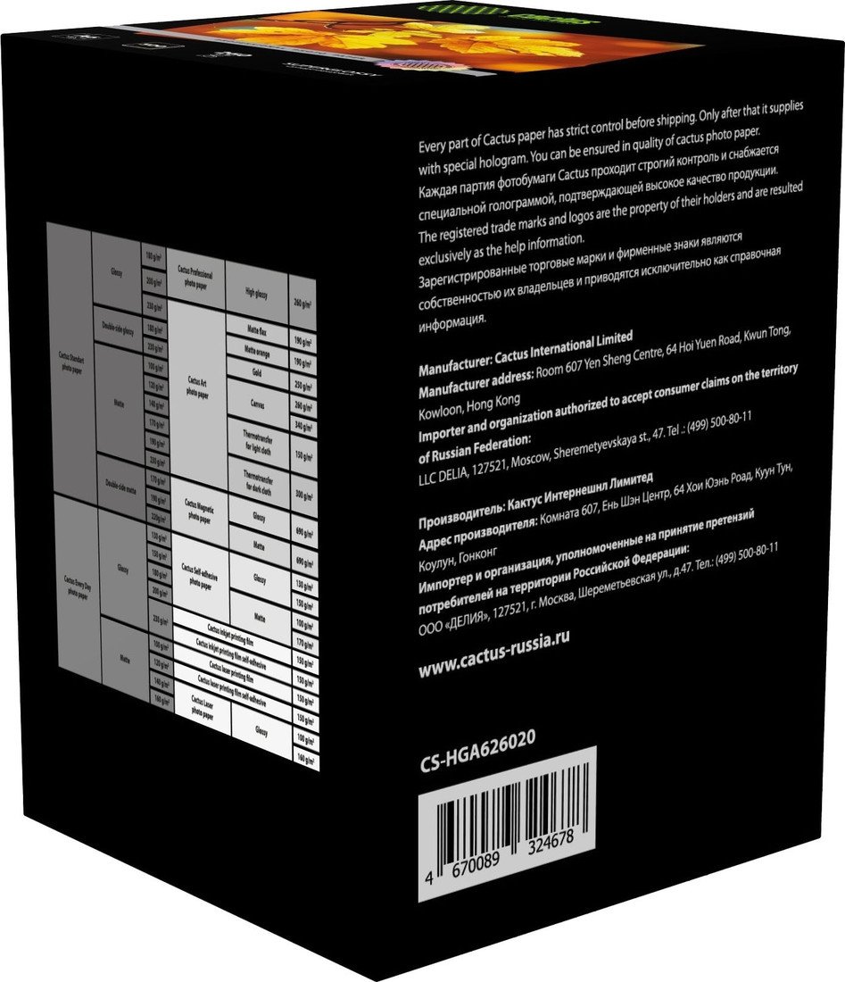 | Информация | - Суперглянцевая фотобумага Cactus Professional для струйной печати - Премиальное качество и особое покрытие для большего блеска и яркости фотографий - Идеально подходит для высококачественной фотопечати и задач, требующих изображений высокого качества - Размер A6, плотность 260г/м2, 500 листов |