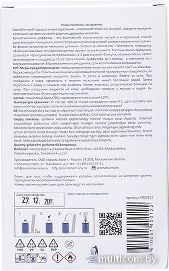 | Информация | Особенности: Ароматический диффузор рассчитан на помещение до 15 м2. Одного диффузора хватает на 1.5-2 месяца. |