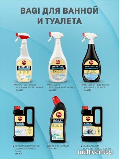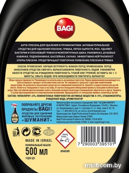 | Информация | Bagi Анти-плесень концентрат для удаления грибка и плесени, и профилактики их появления. Антибактериальное средство для удаления плесени, грибка, пятен сырости, мха. Удаляет бактерии и плесневый грибок в межплиточных швах, раковинах, душевых кабинах, подоконниках, бассейнах, саунах. Спрей от плесени эффективно нейтрализует споры плесени. Чистящее средство антиплесень предотвращает повторное появление плесени и грибка, его можно использовать для стен, для ванны, для бассейна. Цепкая плотная пена специально разработана, чтобы удерживаться на вертикальных поверхностях, делая максимально удобной уборку стенок ванной комнаты и душевых кабин. Концентрированный состав средства от плесени обеспечивает долговременное использование одного флакона и экономичность в пересчете на одно применение. Используется для поверхностей: цементные и силиконовые швы, настенная и напольная плитка, штукатурка, стыки в ванной, занавески для душа, душевые кабины, бассейны, сауны, пластиковые окна. |