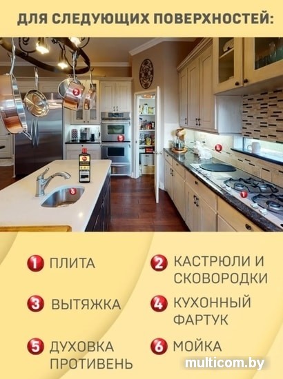 | Информация | Концентрированное средство для удаления жировых и других стойких загрязнений на кухне. Подходит для чистки плит, духовок, вытяжек, кухонных фартуков, гриля, кастрюль и сковородок, фритюрниц и других поверхностей. |