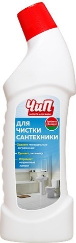 | Информация | Средство чистящее для санузла ЧИП 0,75 л (415-180) предназначен для чистки унитазов, раковин, ванн, смесителей, кафельной плитки от солей жесткости, мочевого камня, ржавчины.- Эффективно удаляет широкий круг загрязнений: соли жесткости, мочевой камень, известковый налет- Отлично борется со ржавчиной- Устраняет неприятные запахи- Удобно в примененииСостав: 30 %: вода питьевая; 5-15 %: фосфорная кислота; Применение:Унитаз: нанести средство на загрязненную поверхность. Выдержать в течение 10-30 мин, в зависимости от степени загрязнения. Почистить щеткой и тщательно смыть.Раковины, ванны, смесители: нанести средство на поверхность и почистить с помощью щетки. Через 2-3 мин тщательно смыть водой.Кафельная плитка: нанести средство на губку и обработать с ее помощью плитку. После обработки средство тщательно смыть.При необходимости обработку повторить.Меры предосторожности: при повышенной чувствительности и повреждении кожи следует избегать длительного контакта со средством. Во время работы рекомендуется использовать резиновые перчатки. При попадании на кожу смыть проточной водой. При попадании в глаза необходимо немедленно промыть их проточной водой. При попадании в желудок выпить большое количество воды. В случае необходимости обратиться к врачу. Беречь от детей!Осторожно, содержит кислоту! рН |