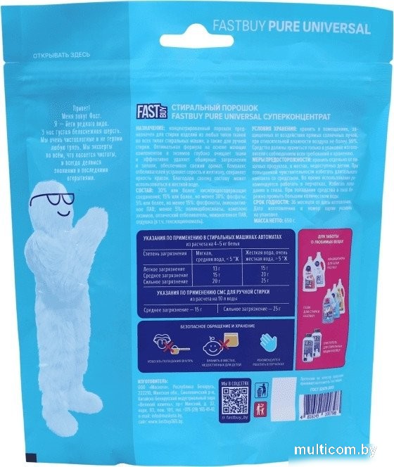 | Информация | - Концентрированный порошок предназначен для стирки изделий из любых типов тканей во всех типах стиральных машин, а также для ручной стирки. Оптимальная формула на основе моющих компонентов и энзимов глубоко очищает ткани и эффективно удаляет обширные загрязнения и запахи, обеспечивая свежий аромат. - Комплекс отбеливателей устраняет серость и желтизну, сохраняя яркость красок. Благодаря своему составу, может использоваться в жесткой воде. - Экономичный расход. 1 упаковка заменяет 7,5 кг обычного порошка. Энзимы удаляют органические пятна. Не содержит хлора и агрессивных отбеливателей. - Эффективен даже при низкотемпературной стирке от 30°C. Подходит для чувствительной кожи при соблюдении дозировки. |