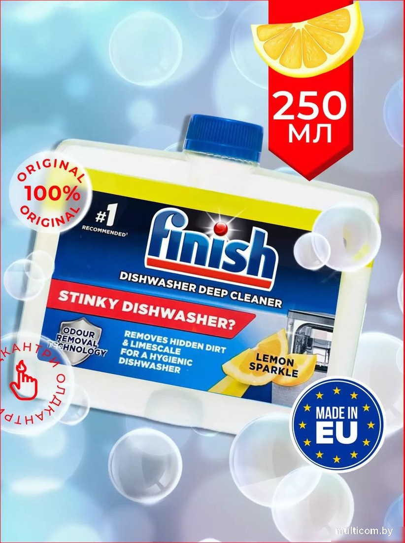| Информация | ??Текст описания составлен при помощи искусственного интеллекта. - Аромат/отдушка: лимон - Объем: 0.25 л - Тип: очиститель для посудомоечной машины - Быстрый выбор: прочие средства для посудомоечных машин - Категория: средства для посудомоечных машин Этот очиститель для посудомоечной машины Finish Dishwasher Cleaner Lemon с ароматом лимона поможет вам поддерживать вашу посудомоечную машину в отличном состоянии. Его удобно использовать благодаря компактному объему 0.25 литра. Просто поместите его в отсек для моющего средства и запустите программу очистки. Всего одно применение в месяц поможет избежать неприятных запахов и накипи в вашей посудомоечной машине. Регулярное использование этого очистителя поможет продлить срок службы вашей техники и сохранить ее эффективность. Правила использования: Удалите стикер, не открывая крышку. Поместите перевернутую вверх дном бутылку с закрытой крышкой в нижний поддон посудомоечной машины. Освободите посудомоечную машину от посуды, запустите цикл мойки с максимальной температурой (минимум 65). Не добавляйте моющее средство. После завершения полного цикла откройте посудомоечную машину, извлеките бутылку и утилизируйте ее. 1 флакон - 1 использование. Используйте 1 раз в 3 месяца. В случае сильных загрязнений процедуру необходимо повторить. |
