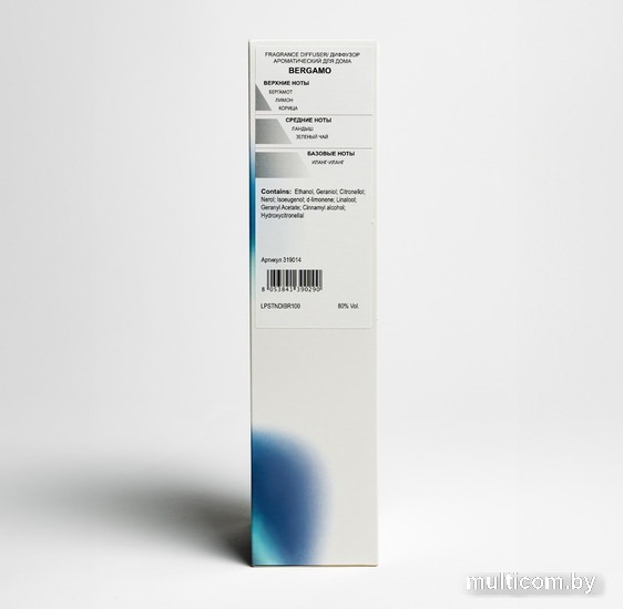 | Информация | ? Аромадиффузор Stenova Home Bergamo 319014 - это ароматическая композиция на спиртовой основе, представленная во флаконах объемом 100 мл. ? В каждой упаковке вы найдете комплект из 7 палочек из ротанга и флакон, наполненный ароматической композицией. ? Ощутите атмосферу Бергамо с его цветущей ароматной зеленью и лимонными садами благодаря этому аромадиффузору. ? Ноты аромата включают в себя корицу, ландыш, лимон, бергамот, зеленый чай и иланг-иланг. |