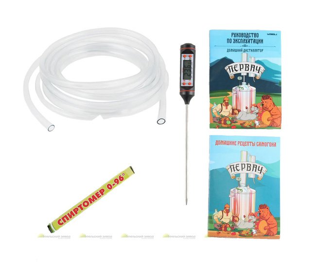 Информация | В комплектации товара силиконовые шланги, термометр, проточный охладитель. Объем перегонного куба – 20 л. |