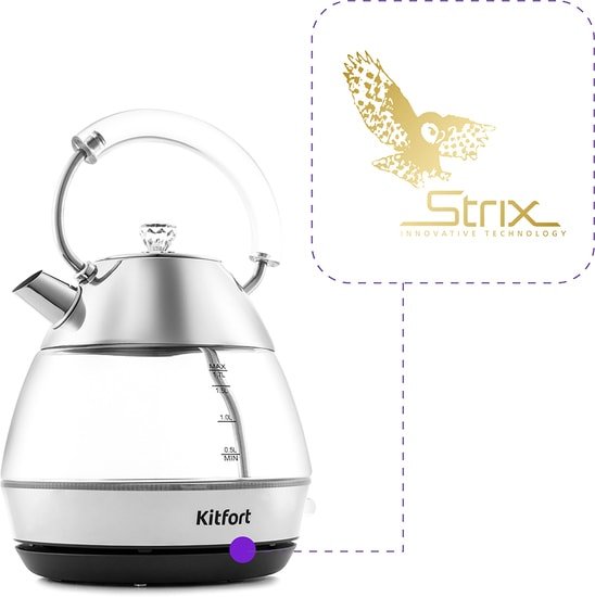 | Информация | Стильный чайник Kitfort КТ-678 выполнен из сочетания трёх материалов — стекла, пластика и нержавеющей стали. За счёт оригинального дизайна он идеально впишется в любой интерьер! |