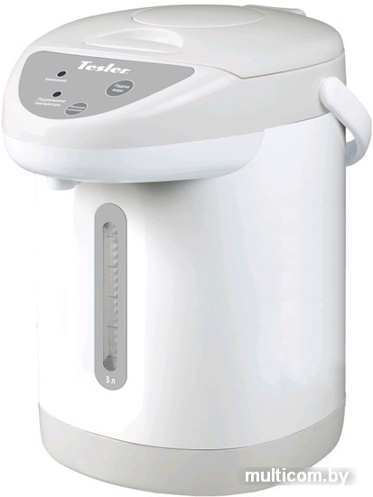 | Информация | Хотите, чтобы в любой момент можно было насладиться ароматным чаем или кофе, на тратя время на ожидание, пока закипит чайник? Тогда вам нужен термопот. Этот гибрид чайника с термосом обеспечит вас любым горячим напитком днем и ночью. Мощности 750 Вт достаточно, чтобы вода в колбе из нержавеющей стали закипала в считанные минуты, несмотря на объем 3 литра. Модель оснащена тремя способами подачи воды – автоматическая и ручная помпа, а также касанием чашки. |
